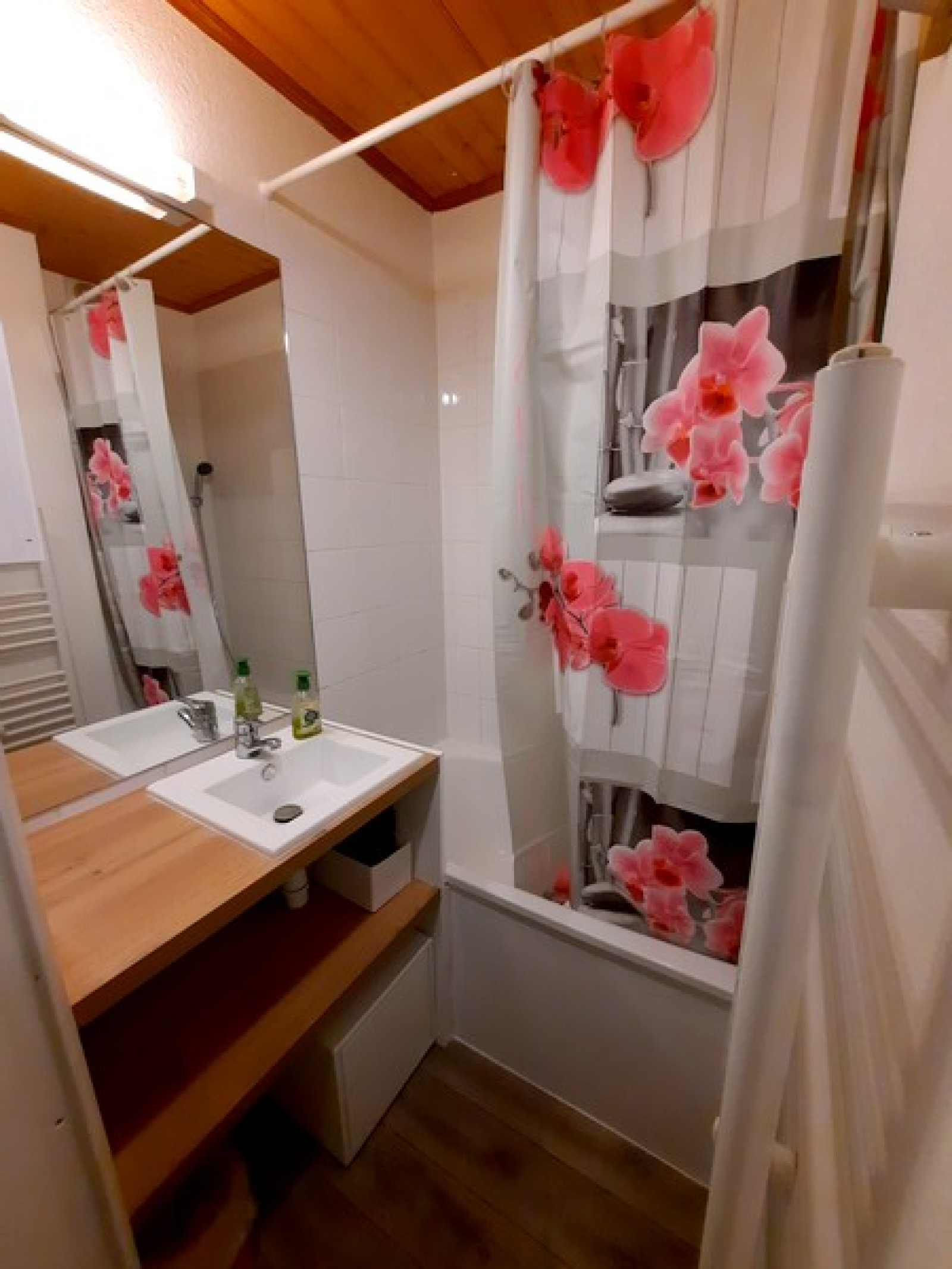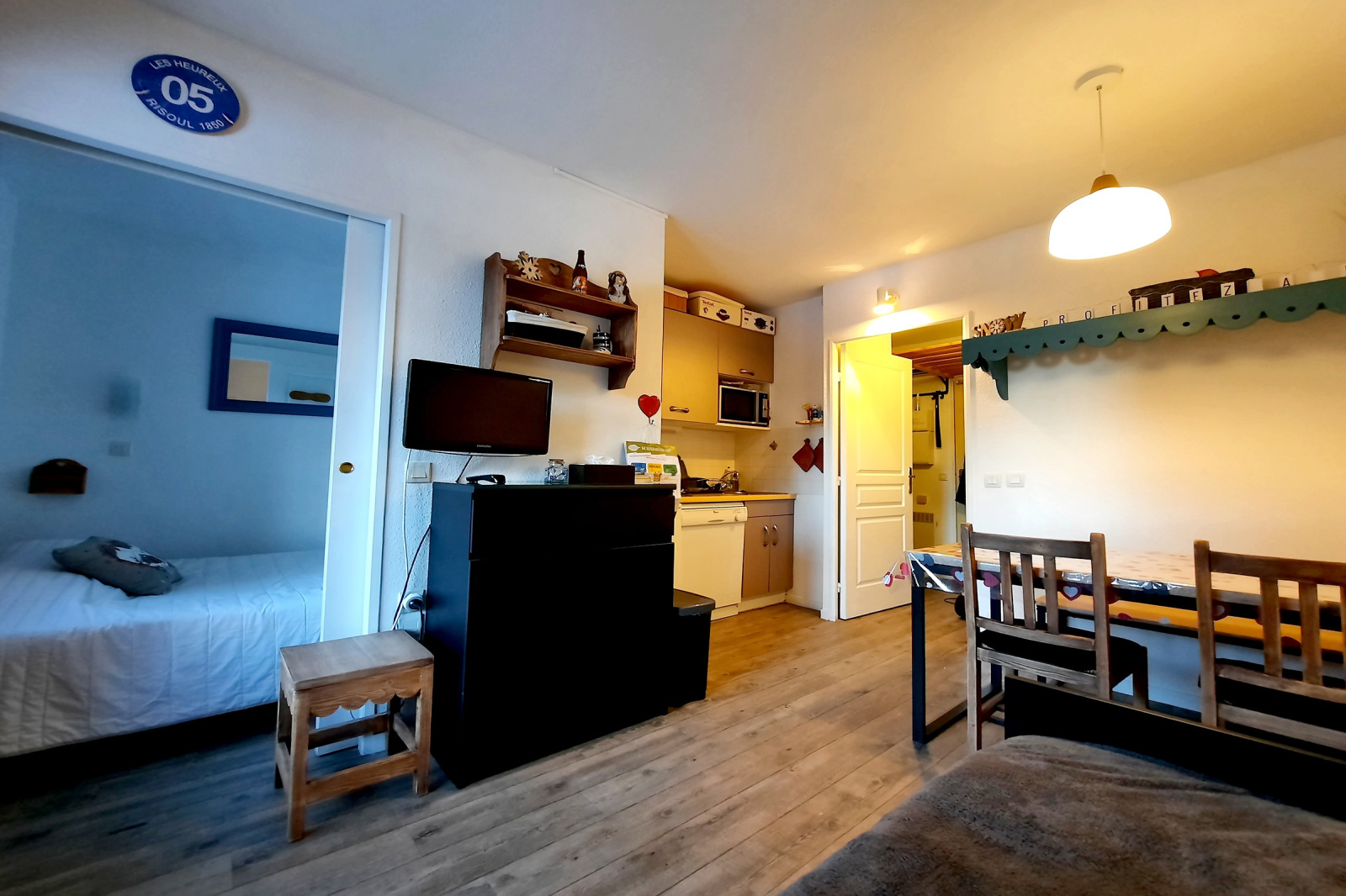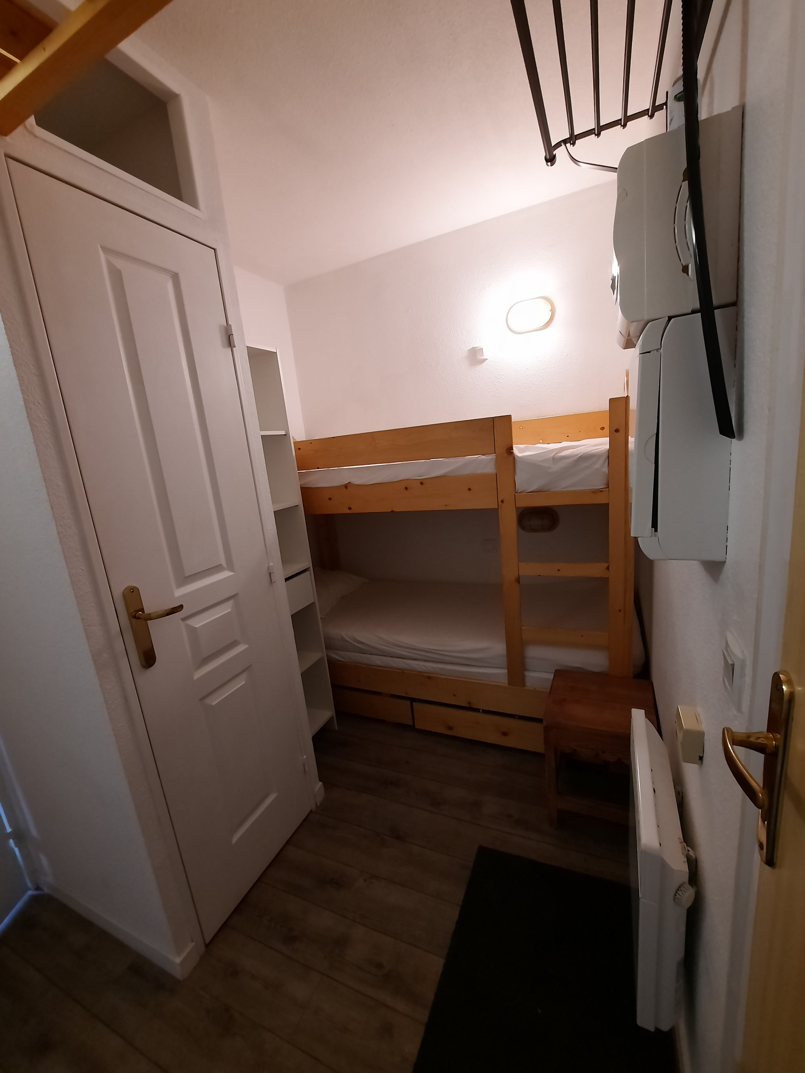 De 4 à 6 couchages, il est composé de : une entrée, un coin-montagne avec deux lits superposés, un WC indépendant, une salle de bains avec sèche-serviette, un séjour avec coin-cuisine entièrement équipée (four/micro-onde, frigo, lave-vaisselle, grille-pain, appareils à raclette/fondue ...), un balcon exposé Nord, un canapé convertible, une chambre indépendante avec un lit double et fenêtre + TV.