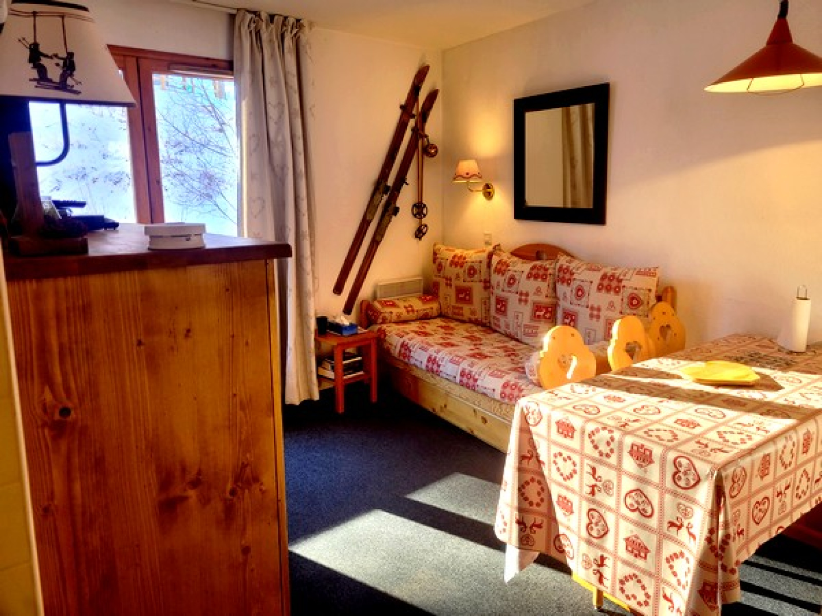 Appartement situé au 2ème étage, loué avec casier à skis avec accès direct sur les pistes de skis, résidence avec accès personnes à mobilité réduite, piscine intérieure, WIFI (SAUNA en SUS).