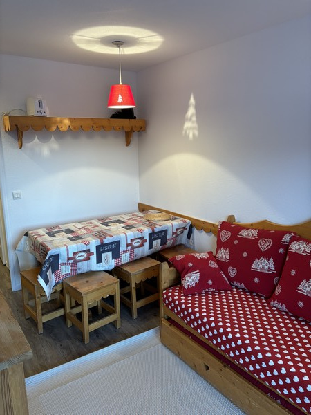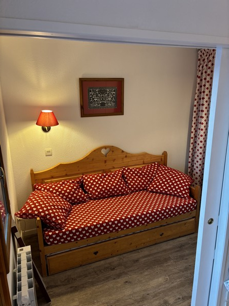 Bel appartement idéalement situé en haut de la station, au pied des pistes de skis et à proximité des commerces. De 4 à 6 couchages, il est composé de : une entrée, un coin montagne avec deux lits simples superposés, un WC indépendant, une salle de bains, un séjour avec coin-cuisine entièrement équipée, un balcon, un lit gigogne (possibilité de 2 lits simples accolés), une chambre indépendante avec un lit double.