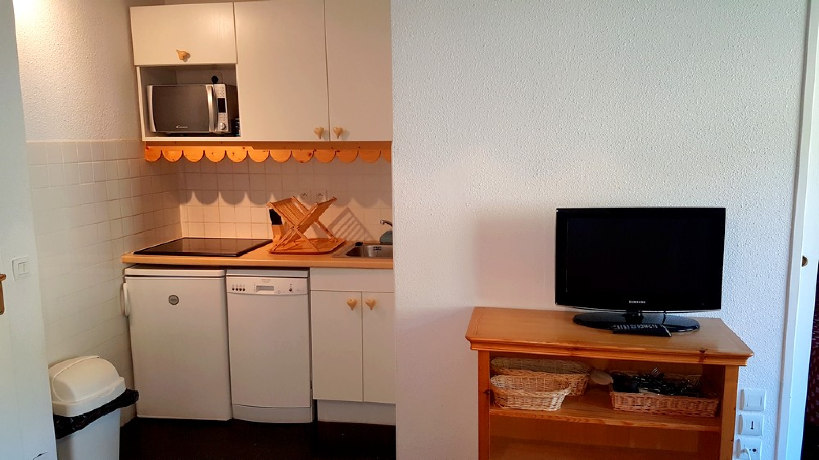 Il est composé de : une entrée, un coin montagne avec 2 lits superposés (80x190cm), un WC indépendant, une salle de bains, un séjour avec coin-cuisine équipée (lit gigogne), un balcon très agréable exposé Nord/Ouest côté montagne, une chambre indépendante avec deux lits simples (90x190cm).