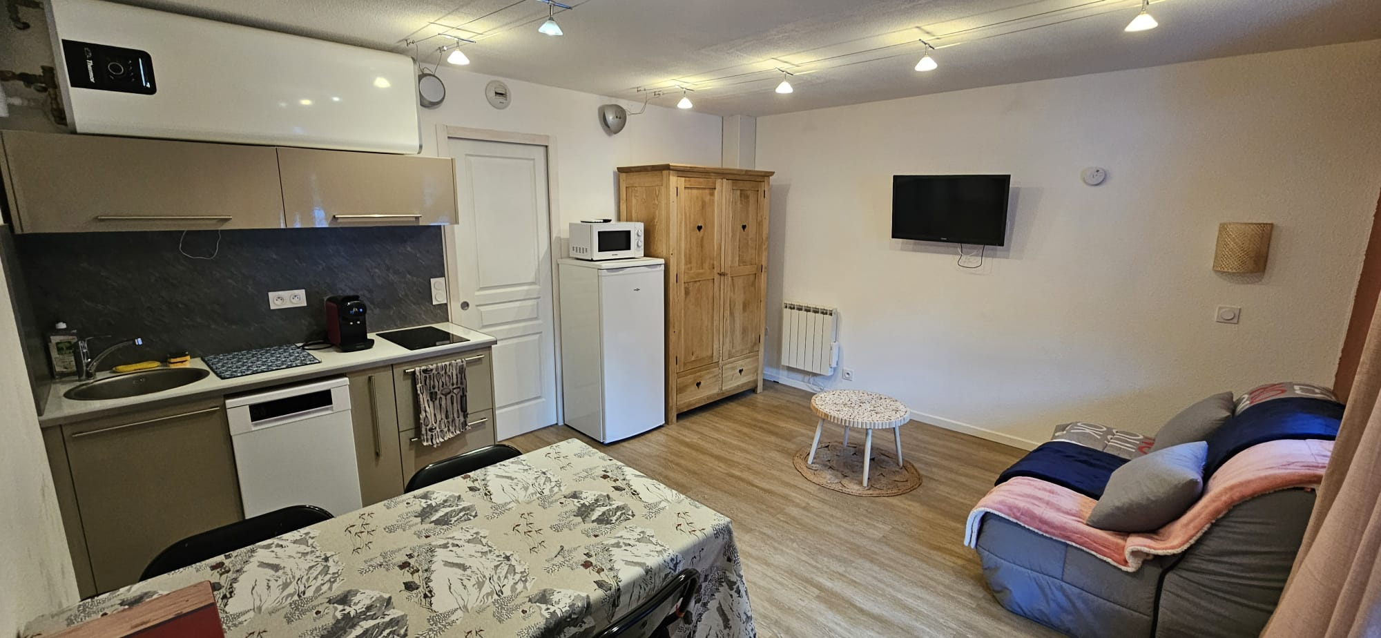 Entièrement rénové , cet appartement est idéal et tout confort pour 4 couchages : une entrée, un grand coin montagne dégagé avec un BZ, une salle d'eau avec WC, un grand séjour avec coin-cuisine entièrement équipée (four, micro-onde, frigo, lave-vaisselle, grille-pain, ...), un balcon, un BZ.