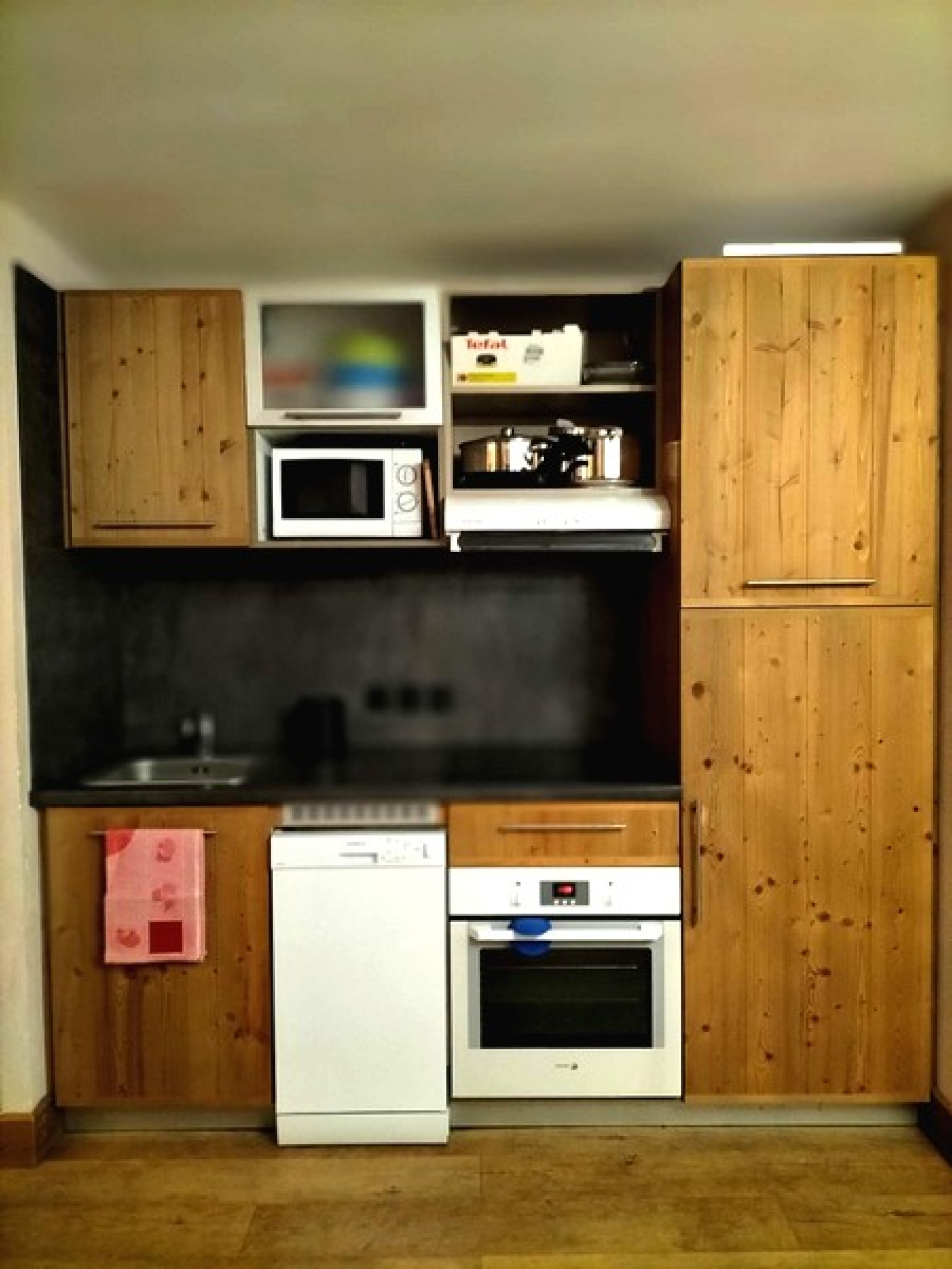 L'appartement se situé au 6ème étage et se compose d'une entrée, un WC indépendant, un séjour donnant sur une cuisine entièrement équipée : frigo, four, micro-onde, lave-vaisselle, plaque de cuisson, hotte, ...