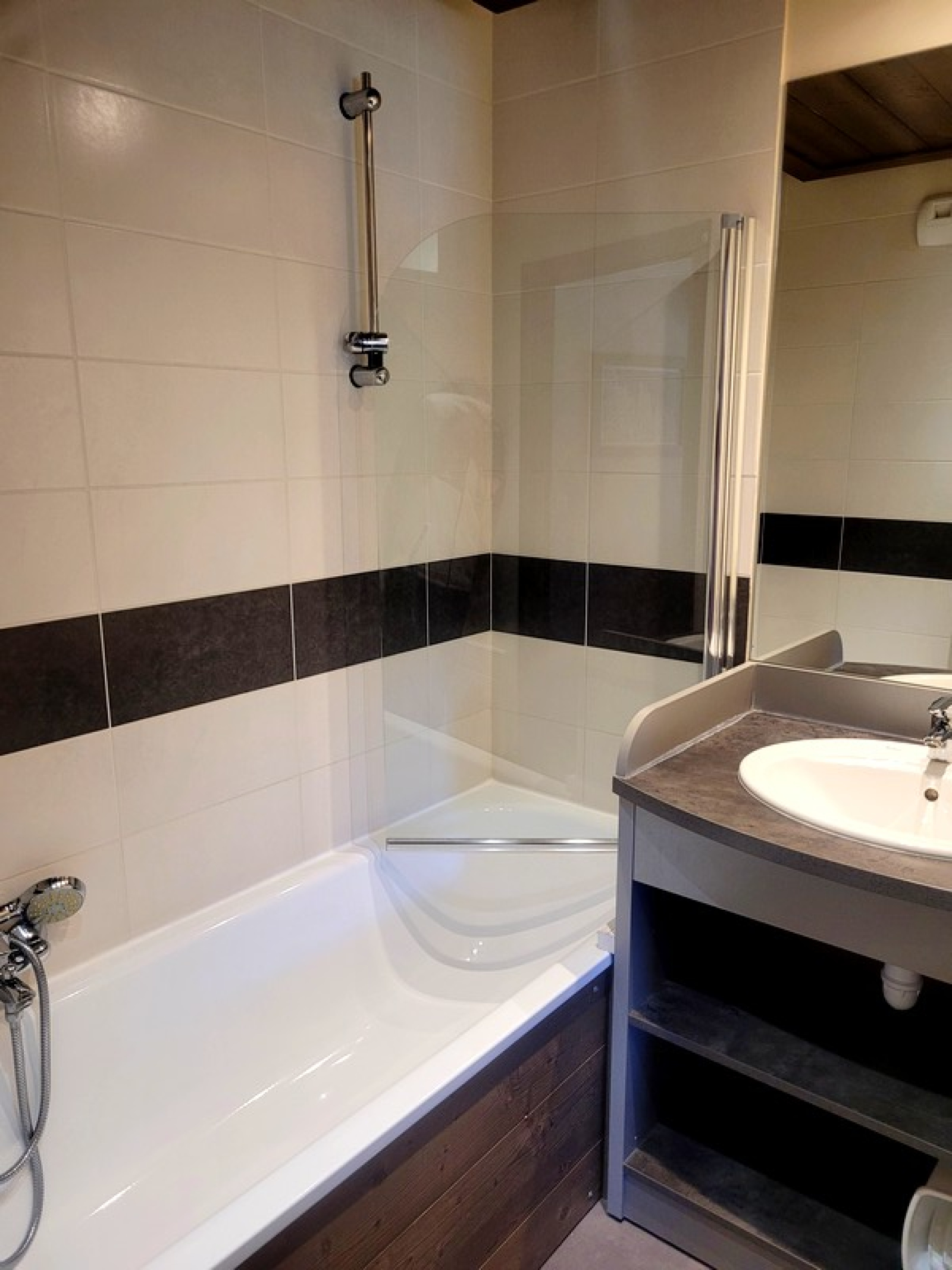 D'environ 56 m² et d'une capacité de 6 couchages, il dispose : d'une entrée avec hall d'accueil , un WC indépendant, un séjour avec coin-cuisine entièrement équipée s'ouvrant sur un grand balcon, une première chambre indépendante avec un lit double en 160cm attenante à une salle de bains, deux autres chambres indépendantes disposant d'une salle d'eau commune avec douche avec deux lits simples, et la seconde avec une banquette non convertible.
